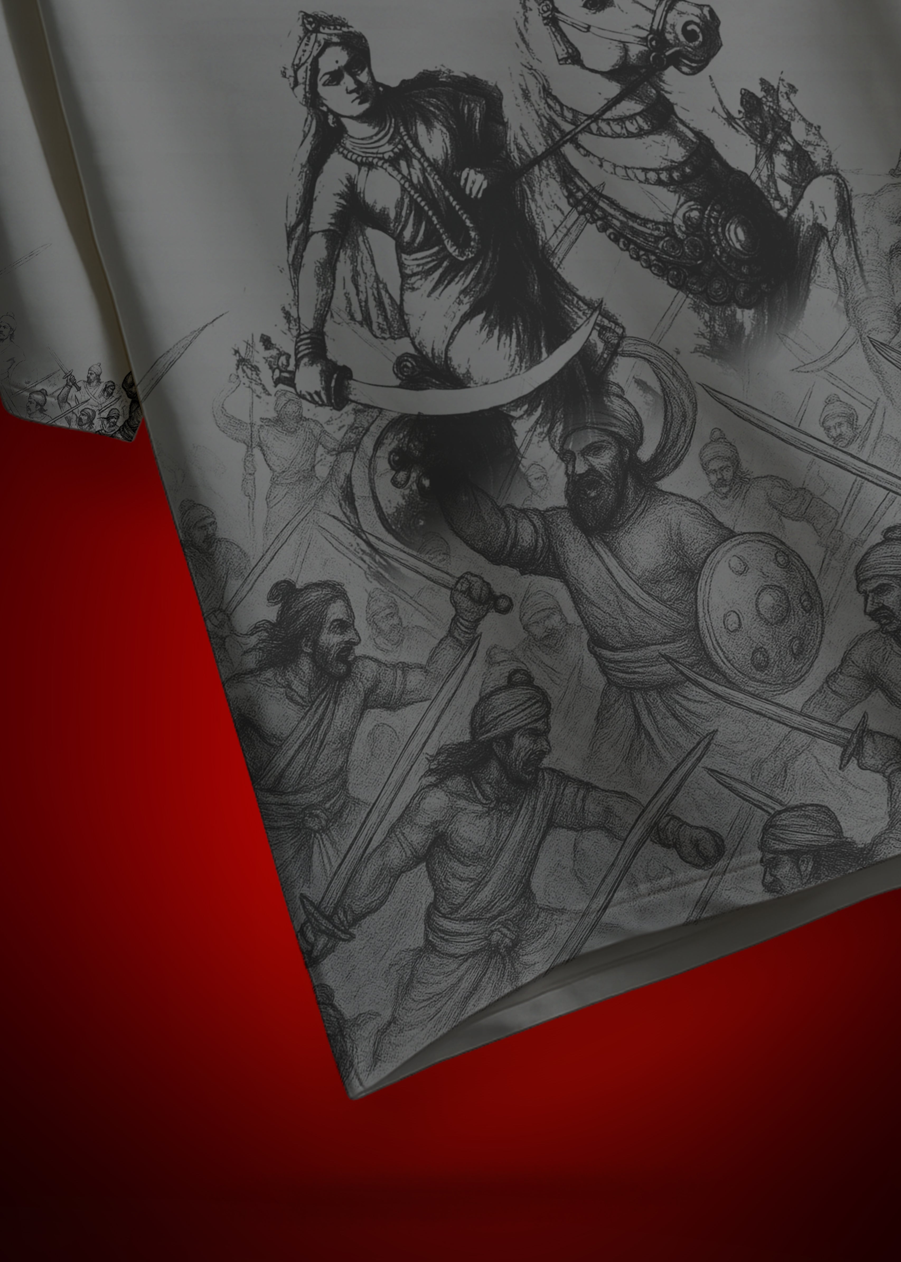 Velu Nachiyar Battle Field Printed T-Shirt- Grey