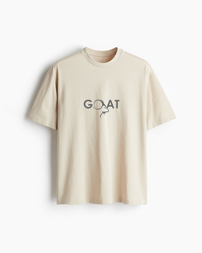 GOAT Series Iconic Chequera Back Graphic Regular Fit T-Shirt for Men- Beige