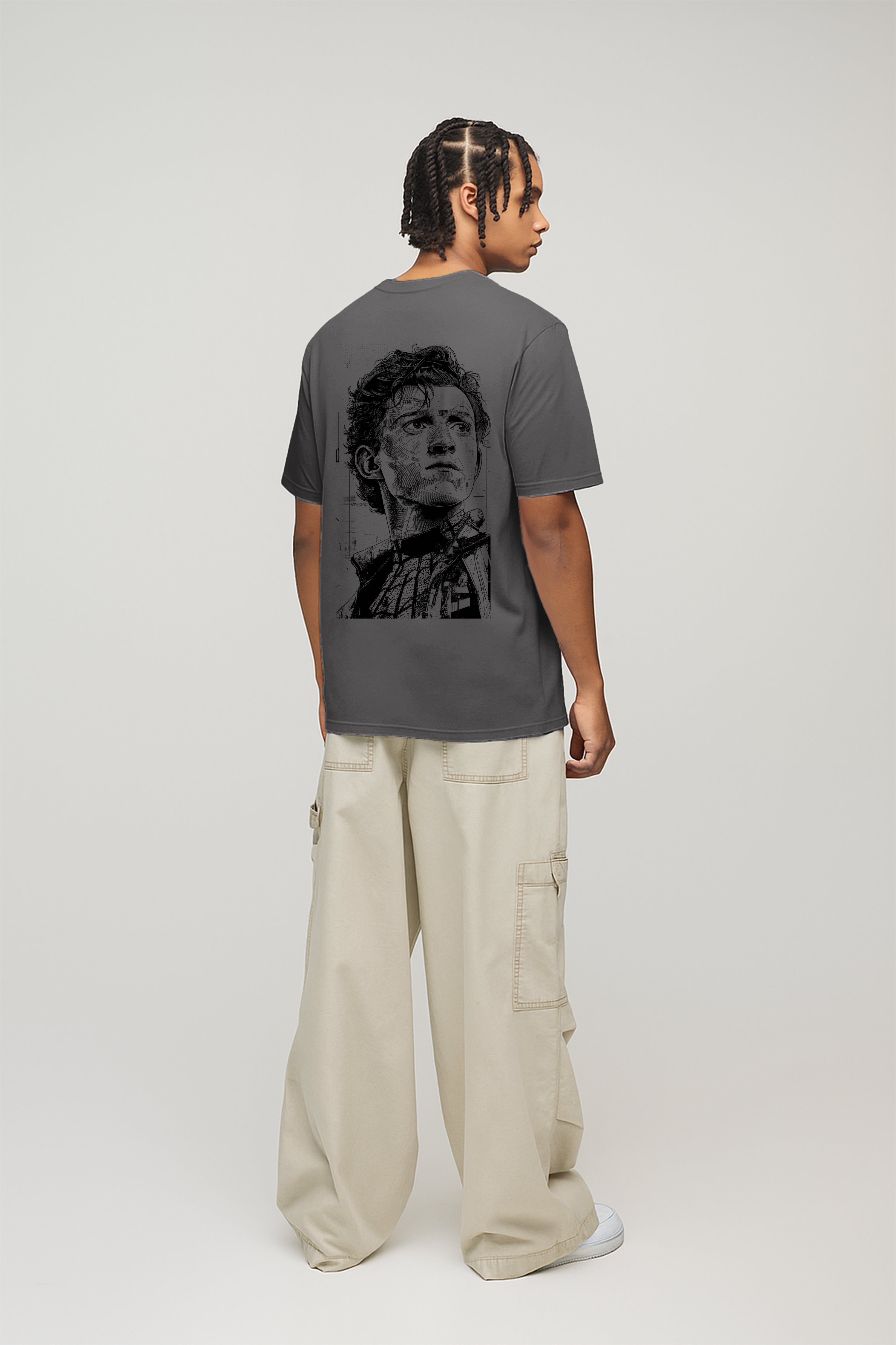 Peter Parker Back Printed T-Shirt- Grey