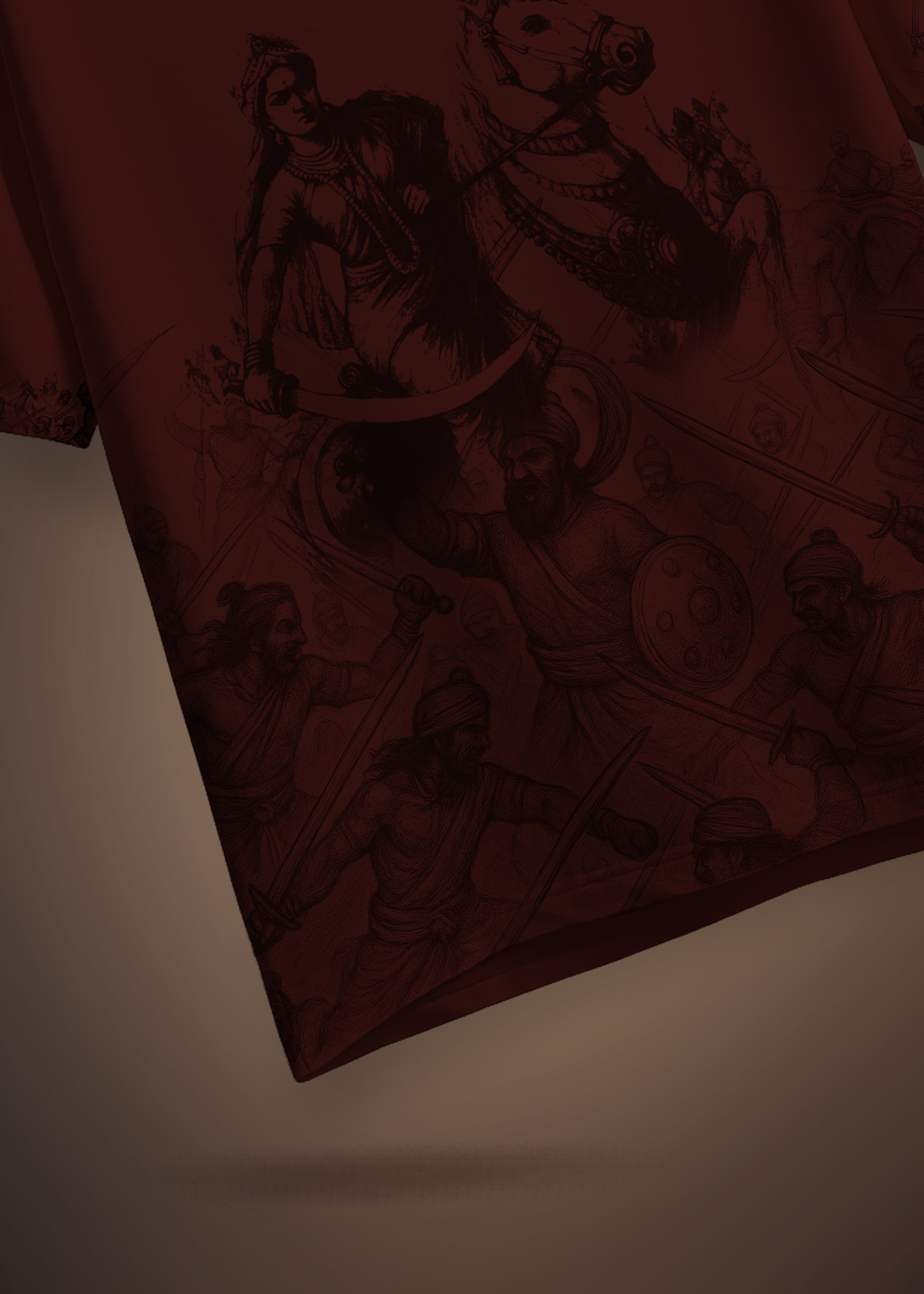 Velu Nachiyar Battle Field Printed T-Shirt-Brown