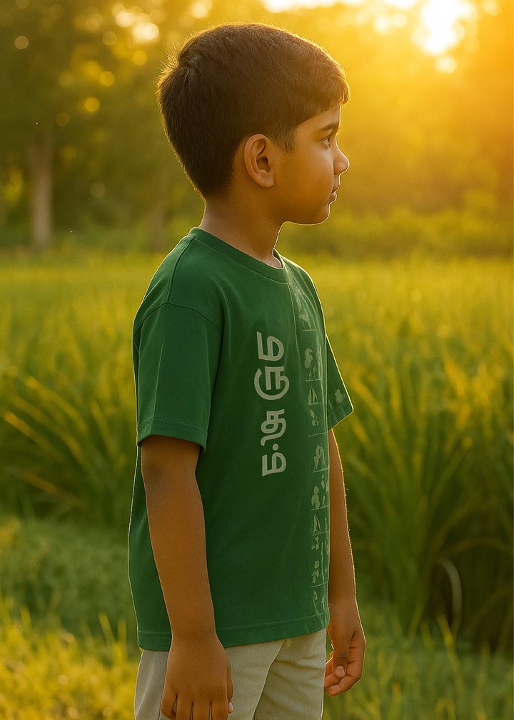 J&JP Kids Marutham Printed Over Sized Half Sleeve T-shirt- Green