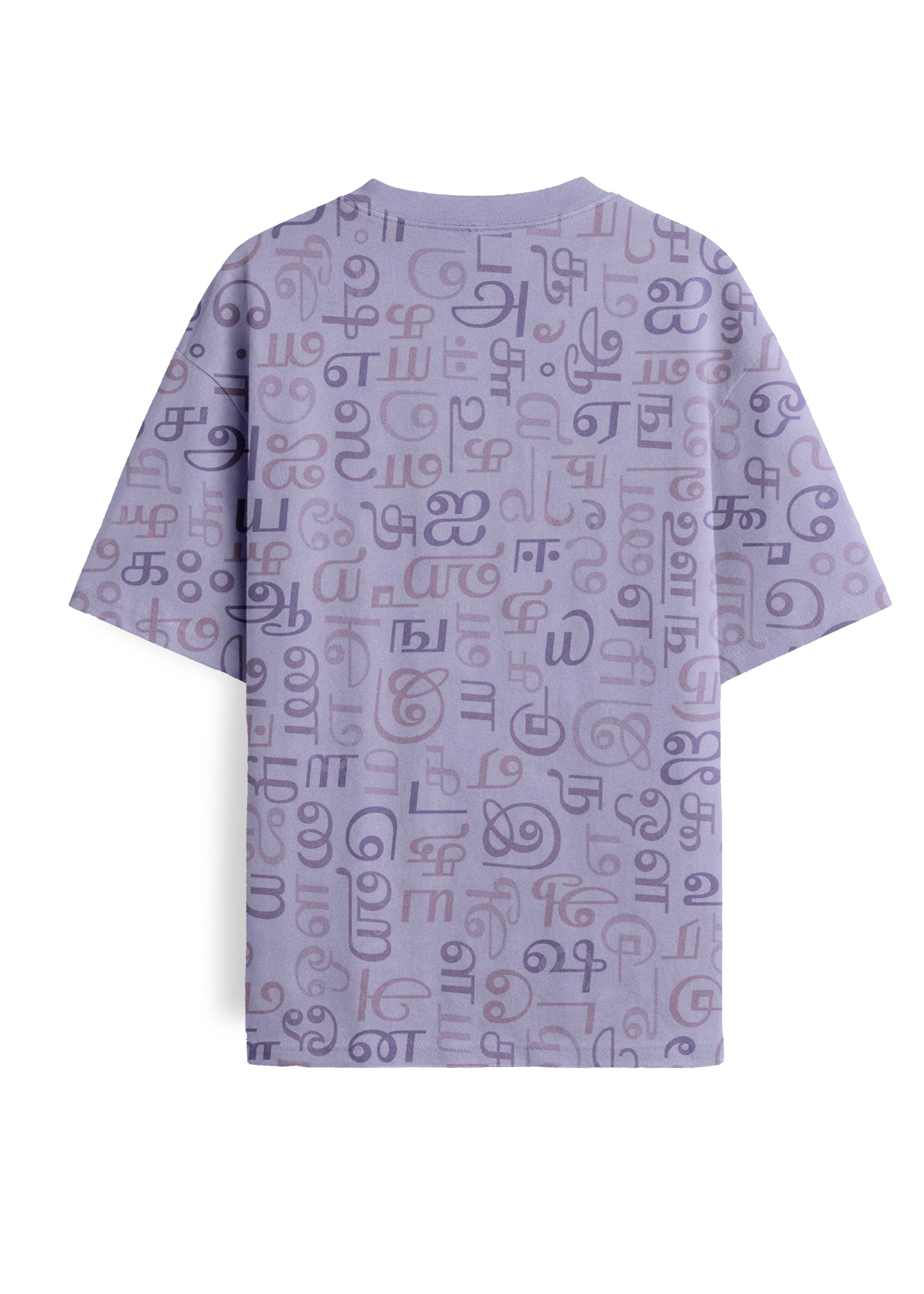 Men's Tamil Letters All Over Print Tshirt- Purple