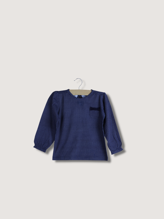 Kids Navy Bishop Sleeve, Full sleeve Polka Print Fleece, Loop Knit T-Shirt