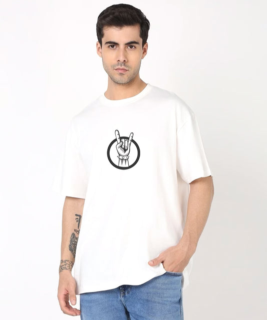 J&JP Men Oversized Back Printed T-Shirt-Beige