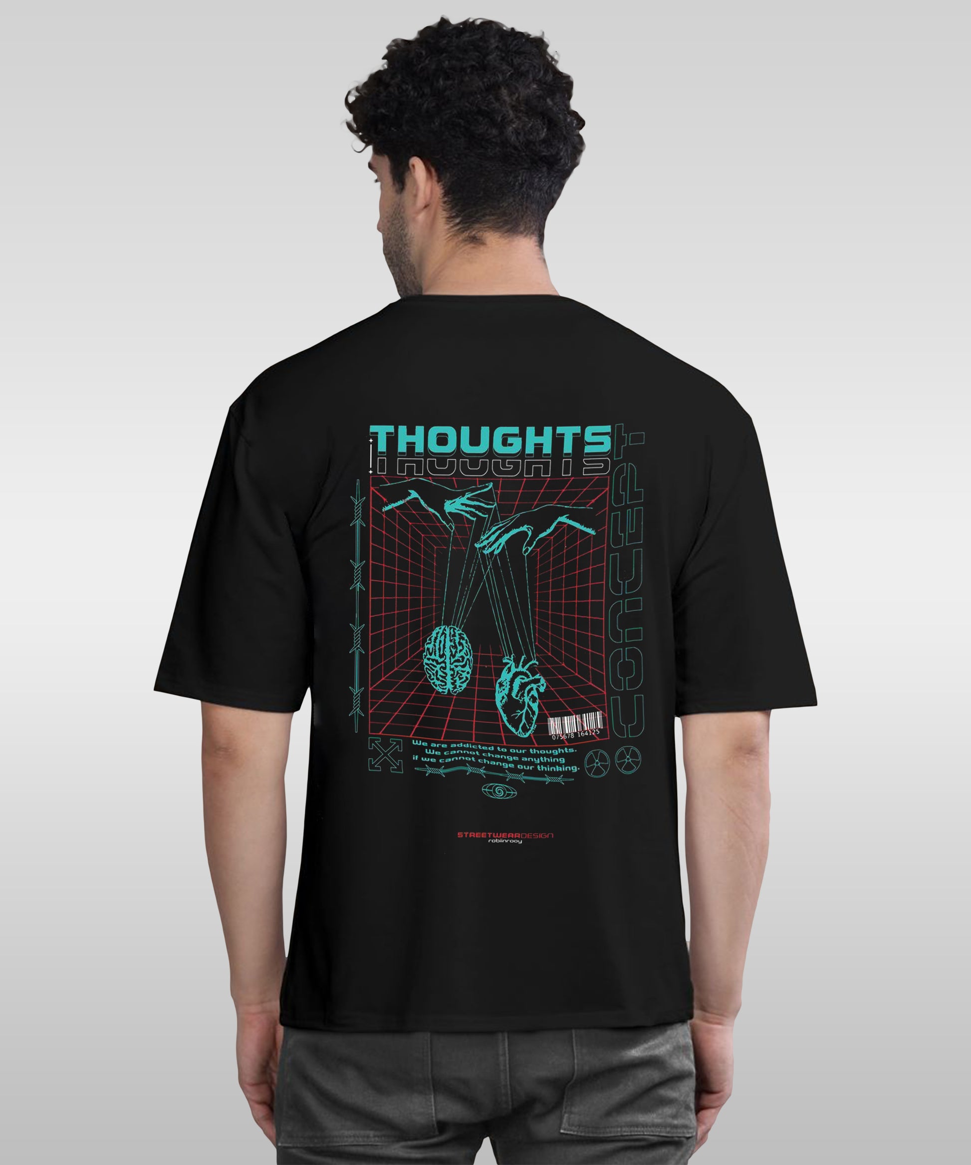 J&JP Men Oversized Back Printed T-Shirt-Black